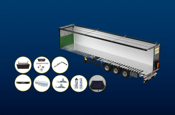 | SEMIRIMORCHIO PIANO MOBILE KRAKER K-FORCE PORTE LATERALI Caratterizzato da due aperture lungo tutta la parete sinistra e dal tetto sopra le porte sollevabile di 30 cm, questo veicolo garantisce la massima luce di carico laterale per il trasporto di carichi lunghi e indivisibili. |