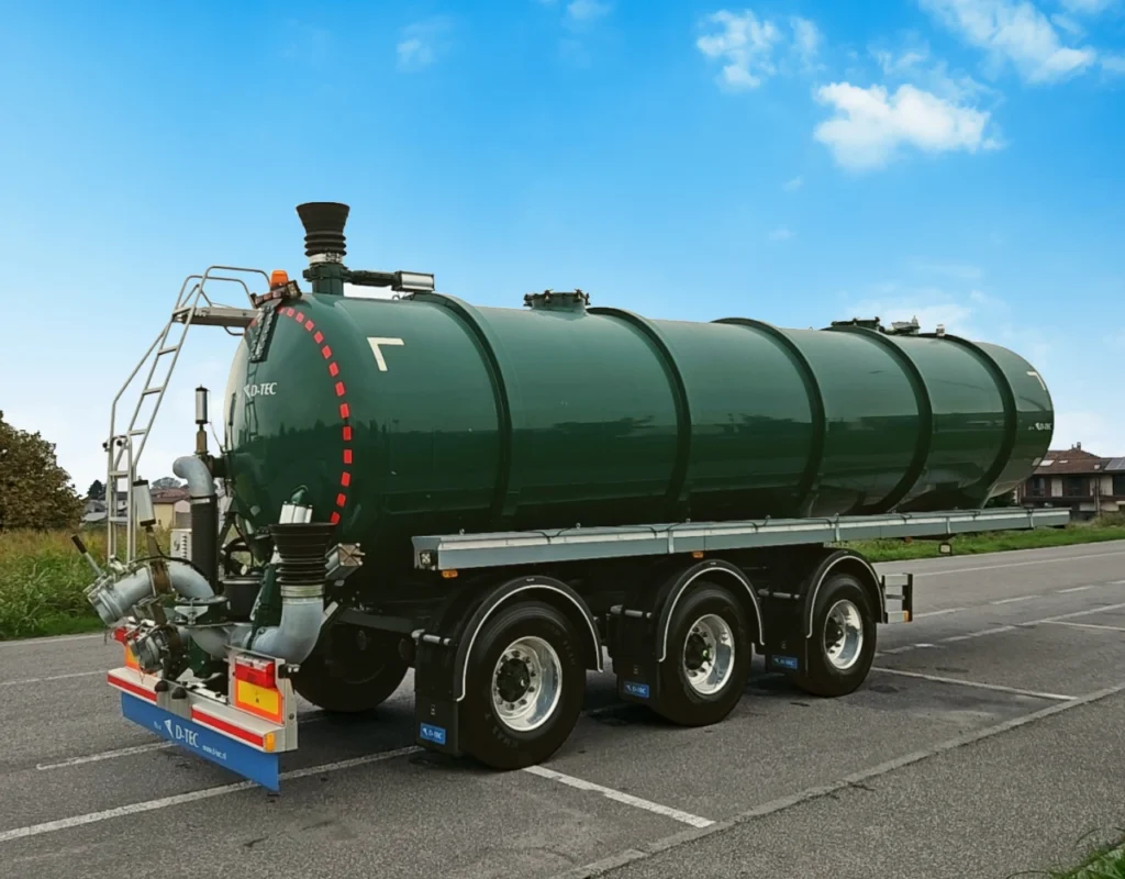 FV2006 è il modello della gamma D-TEC studiato per i contesti agricoli. Gli assi (primo e terzo) sterzanti a ralle e gli accorgimenti per il transito su strade bianche rendono questo semirimorchio perfetto per il trasporto di sottoprodotti liquidi (quali effluenti zootecnici, digestato, sansa di olive…) su strada e campo, in ingresso e in uscita da impianti di biogas o biometano.