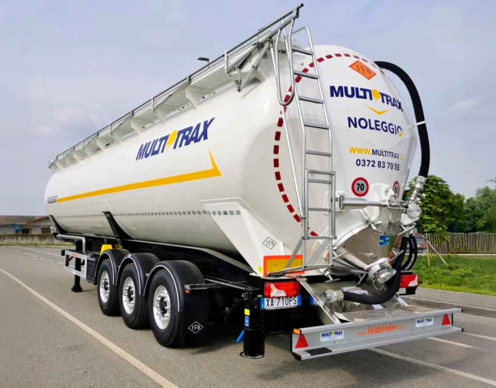 | CISTERNA FELDBINDER KIP 60.3 Nello stand di Transpotec Logitec esporremo il semirimorchio cisterna ribaltabile a pressione (capacità 60 mc) firmato Feldbinder. Adatto al trasporto di materiali pulverulenti o granulari. |