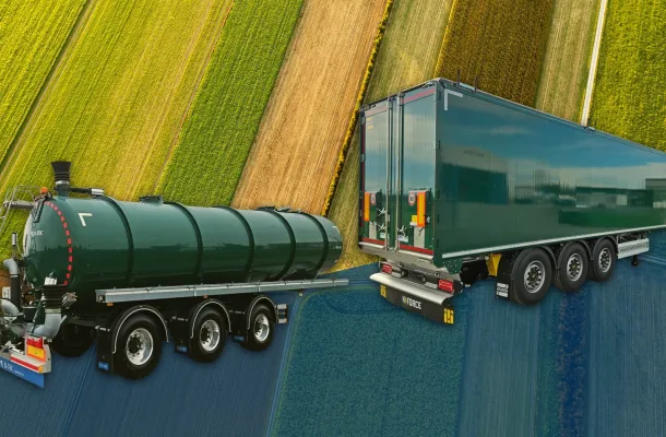 Semirimorchio ribaltabile bilaterale doppia cassa – 13.60 mt – sospensioni pneumatiche – freni a disco – 1° asse sollevabile – 3° asse sterzante – sponde + sovrasponde 1,7 mt – telaio in acciaio – ribaltamento tramite impianto idraulico / elettropompa – nr. 6 pneumatici 385/65 R 22.5.