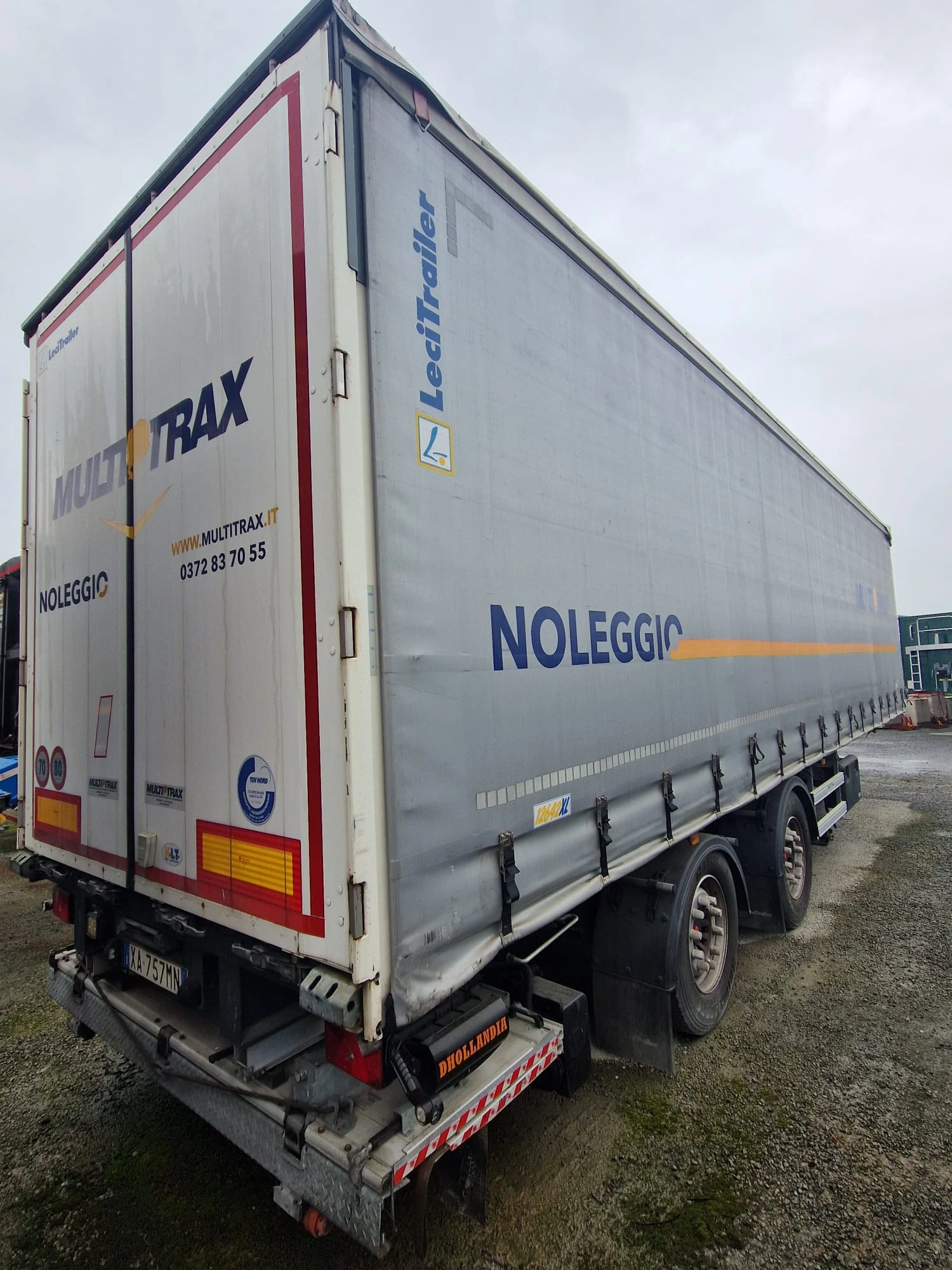 Semirimorchio piano mobile porte laterali lato SX – 1° asse sollevabile – freni a tamburo – telo di copertura – porte posteriori – nr. 6 cerchi – nr 6 pneumatici.