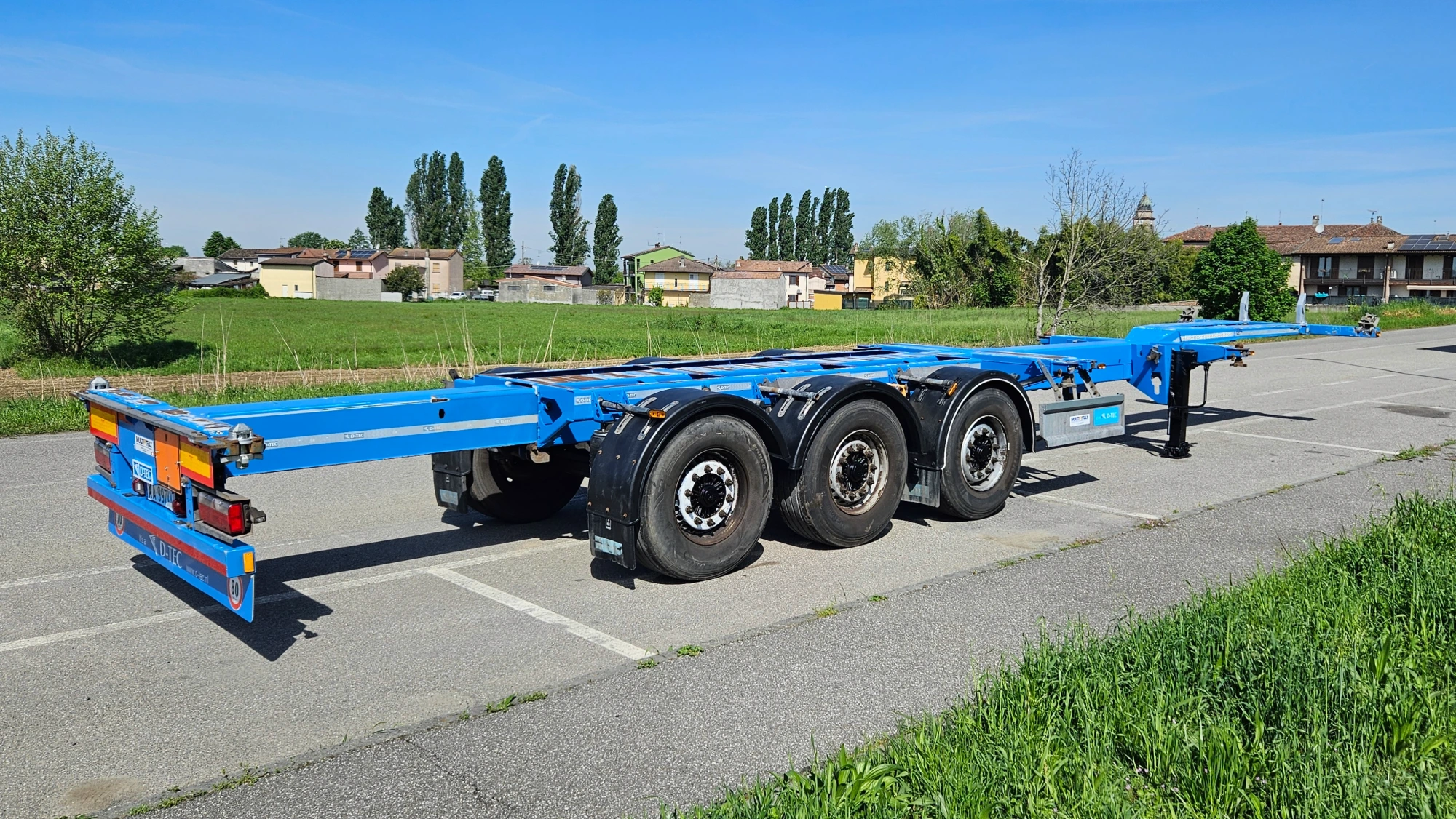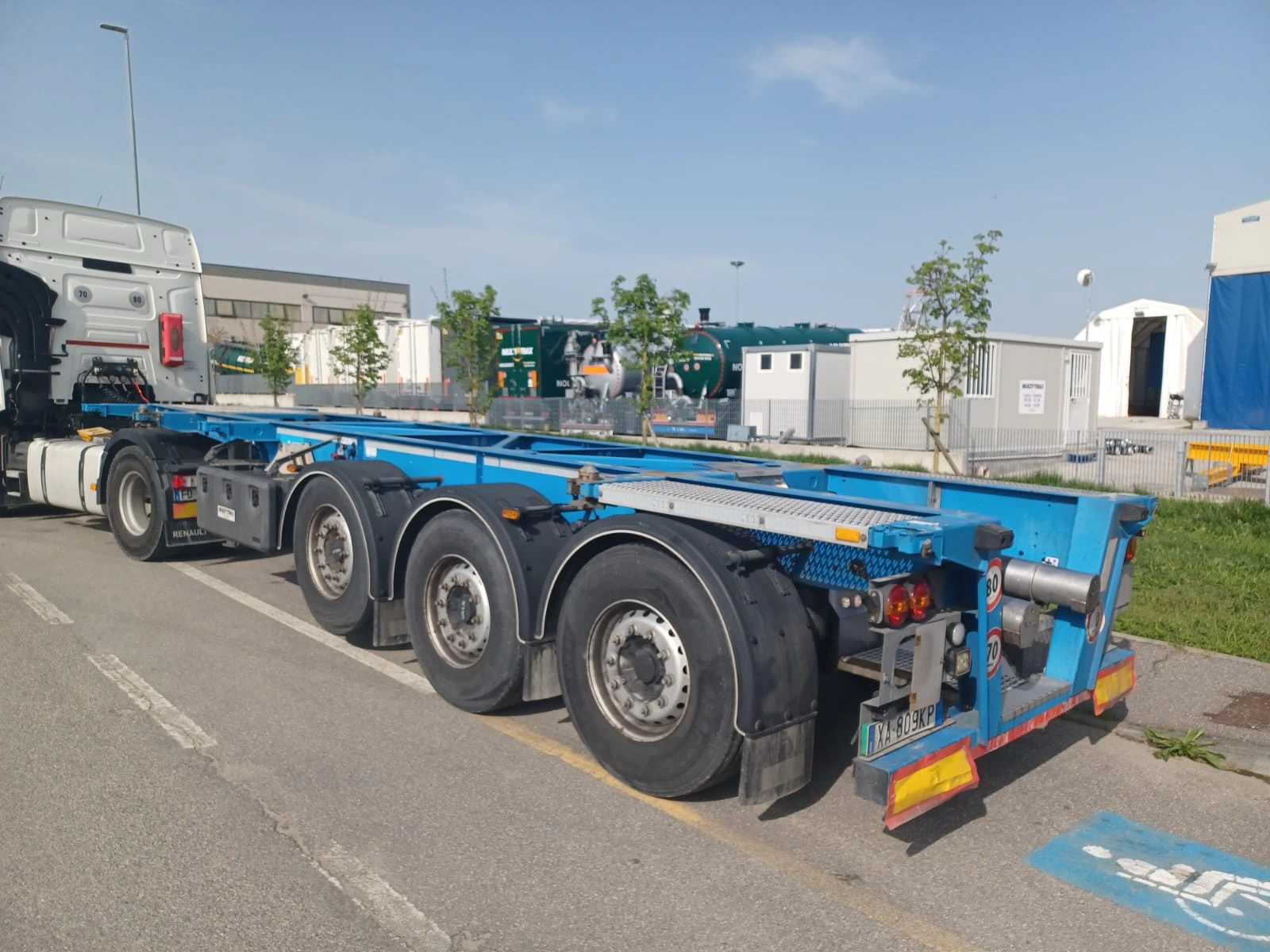 Porta container fisso – 1° asse sollevabile – 3° asse sterzante – nr.6 cerchi in acciaio – freni a disco – nr. 6 pneumatici 385/65 R.22.5 – idoneo al trasporto di: 1 x 30′ – 1 x 20′ centrale – 1 x 20′ a filo posteriore – incluso trasporto di nr. 1 Tank 7.82 bilanciato – KM PERCORSI: 126.000.